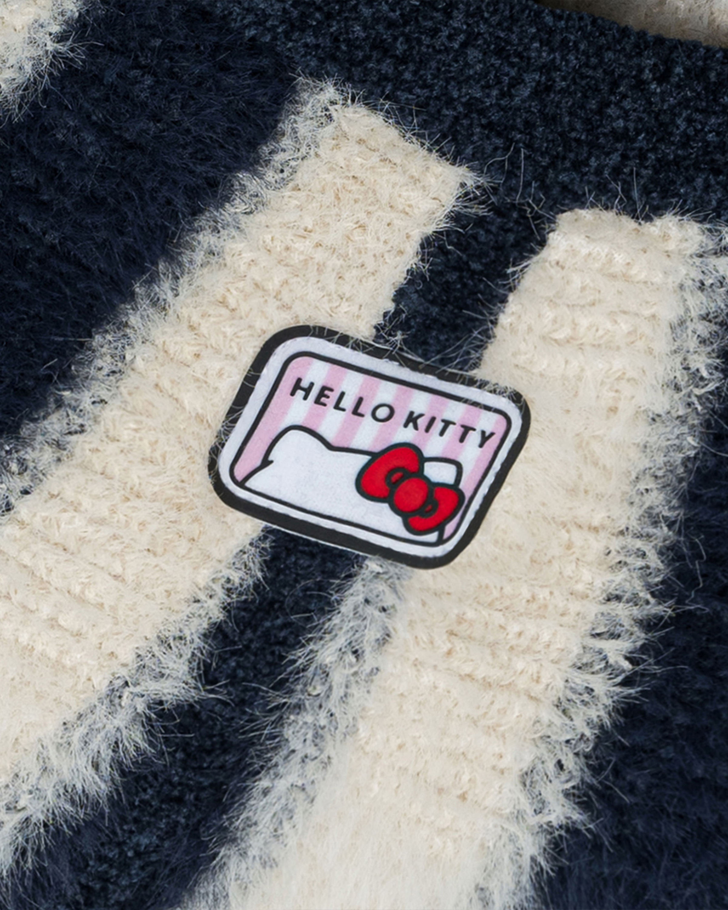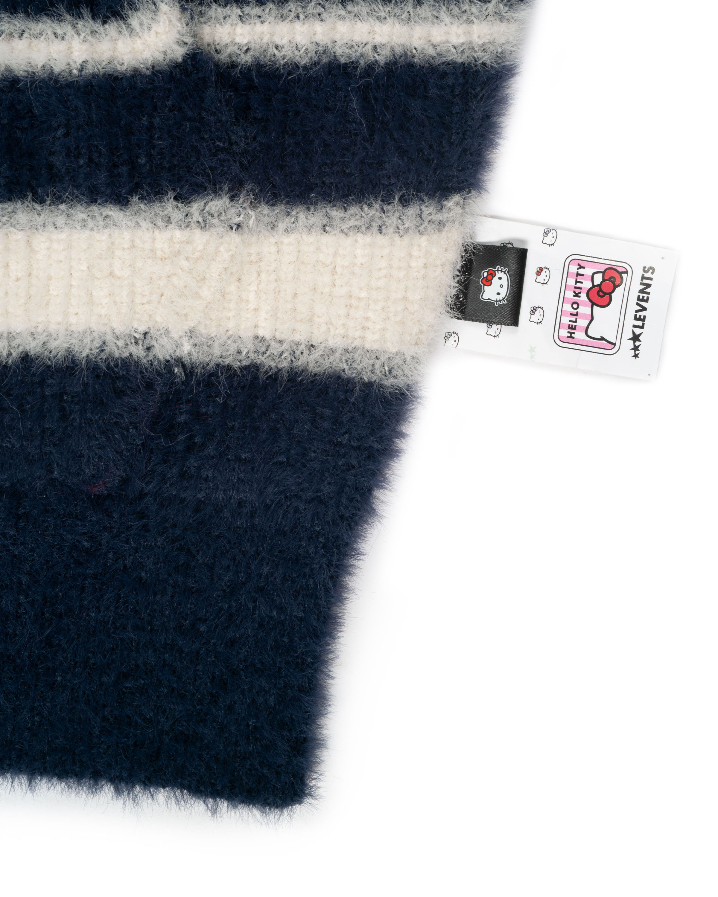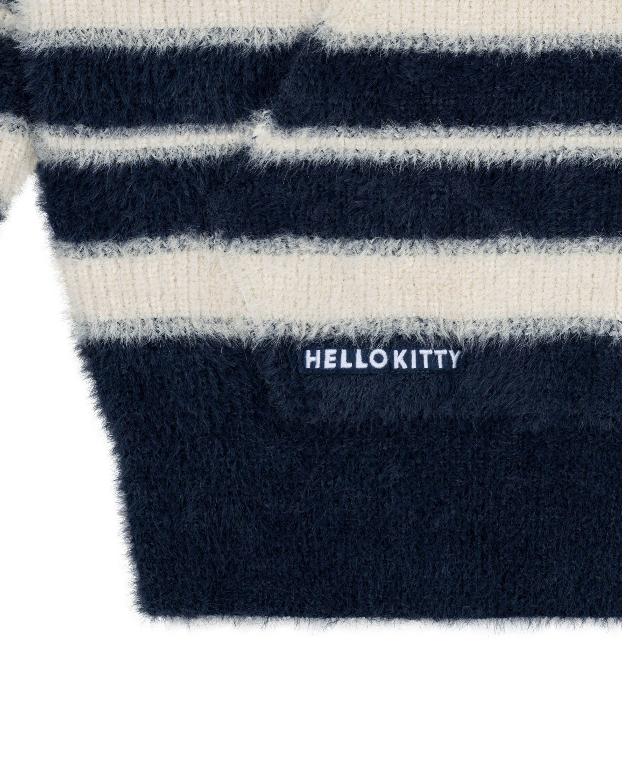 Levents® x Hello Kitty | Striped Fur Knit Boxy Hoodie/ Navy