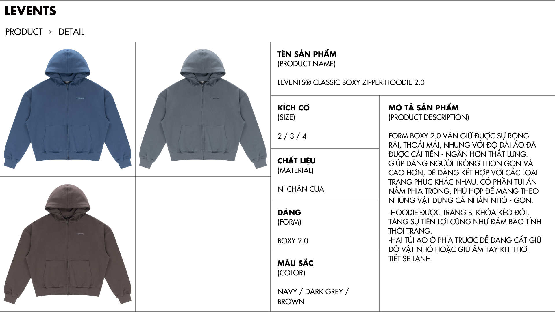 Mỗi sản phẩm trên WEBSITE đều có đầy đủ thông tin sản phẩm, sizechart, hình ảnh chi tiết của sản phẩm.