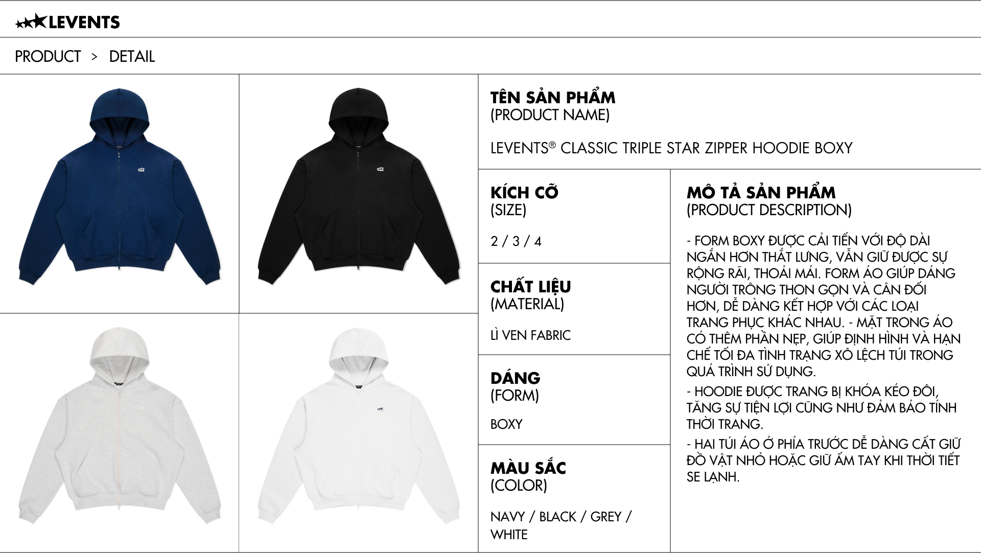 Mỗi sản phẩm trên WEBSITE đều có đầy đủ thông tin sản phẩm, sizechart, hình ảnh chi tiết của sản phẩm.