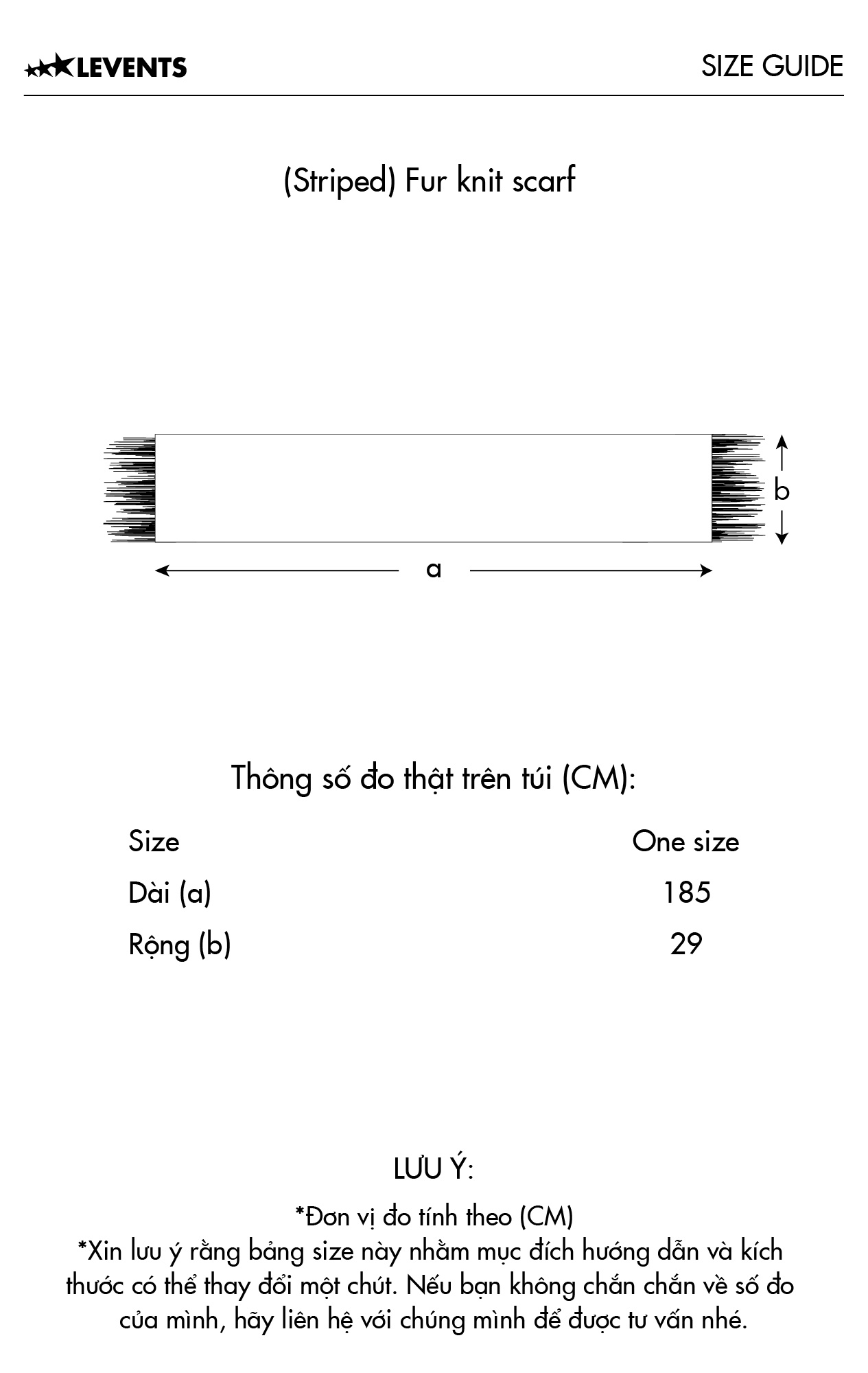 Hoặc kiểm tra với bộ phận chăm sóc khách hàng của Levents® qua Fanpage FB/IG hoặc hotline