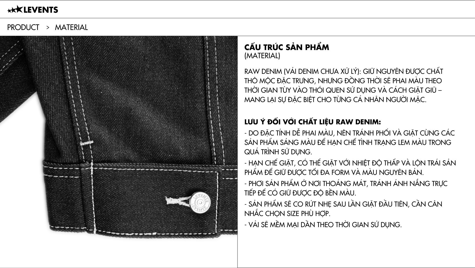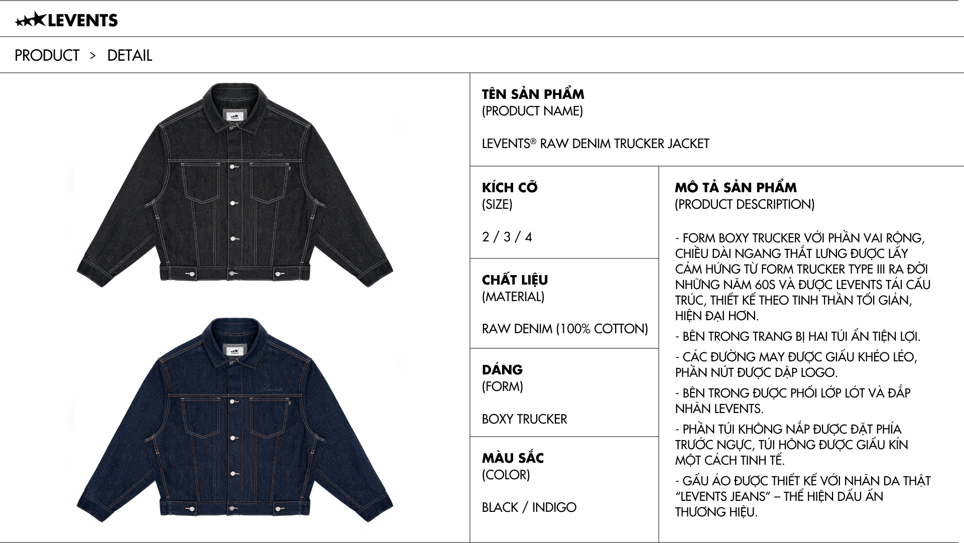 Form Boxy Trucker với phần vai rộng, chiều dài ngang thắt lưng được lấy cảm hứng từ form Trucker Type III ra đời những năm 60s và được Levents tái cấu trúc, thiết kế theo tinh thần tối giản, hiện đại hơn.