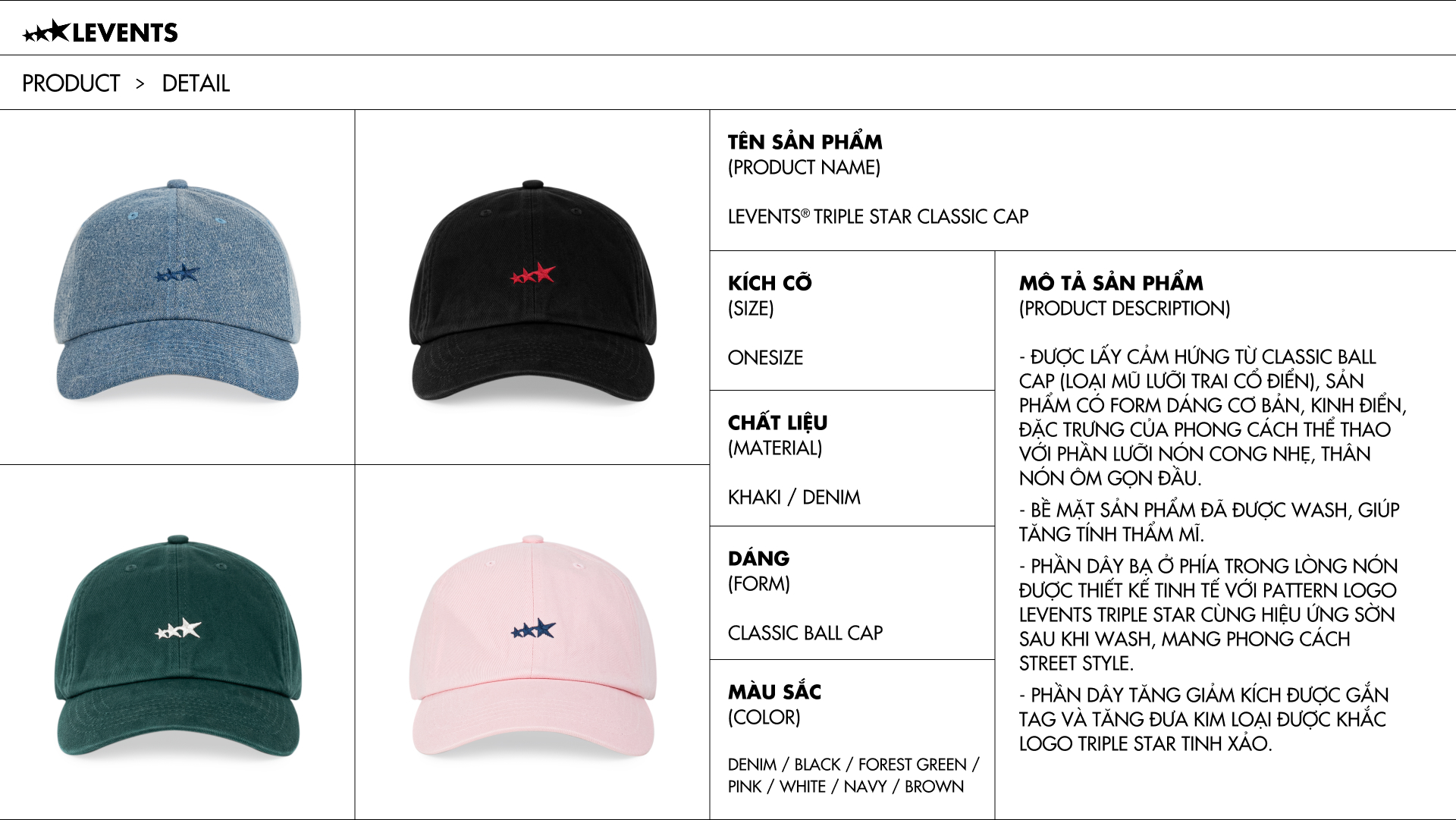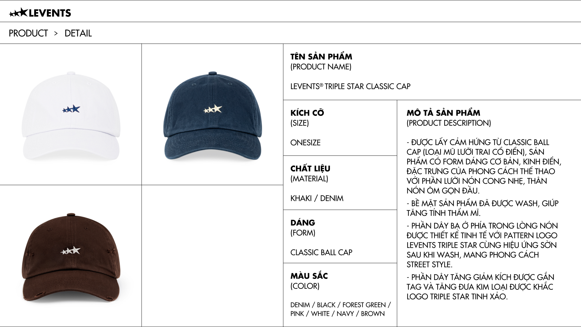 Mỗi sản phẩm trên WEBSITE đều có đầy đủ thông tin sản phẩm, sizechart, hình ảnh chi tiết của sản phẩm.