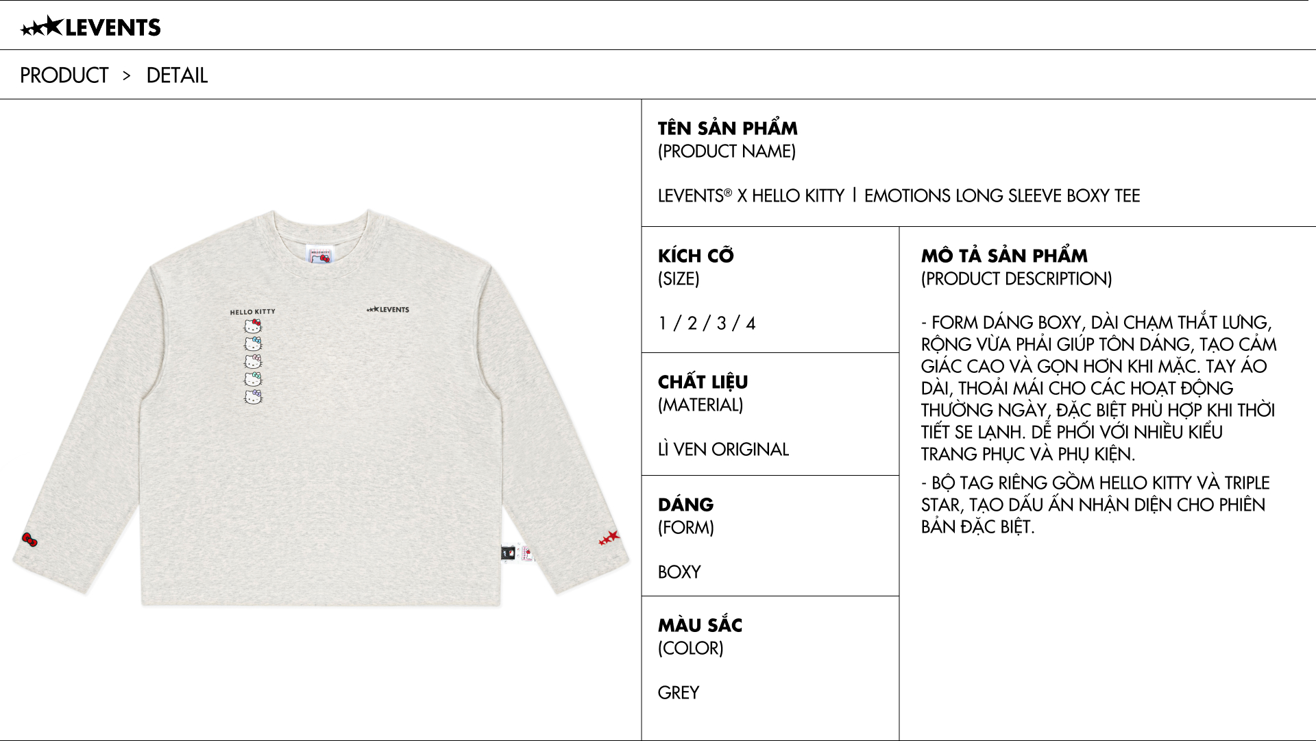 Levents® x Hello Kitty | Emotions Long Sleeve Boxy Tee/ Grey
