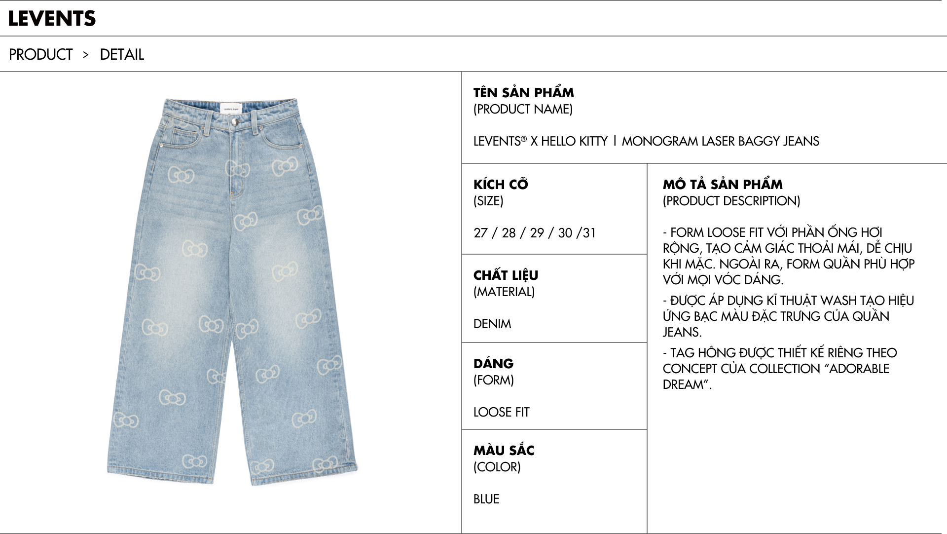 Levents® x Hello Kitty | Monogram Laser Baggy Jeans/ Blue